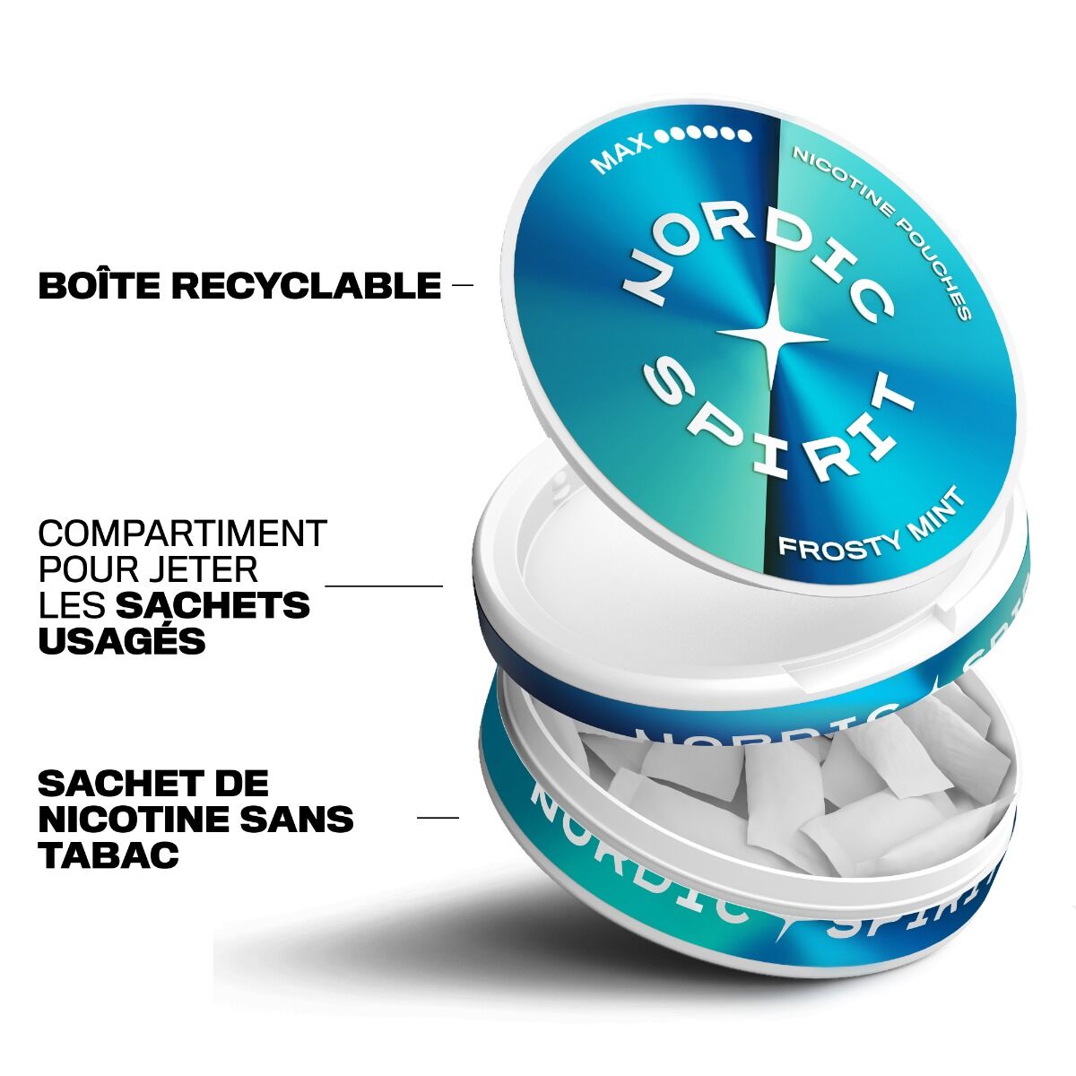 Les sachets de nicotine Frosty Mint offrent un goût mentholé frais et intense. Frosty Mint est disponible en Très Fort et Intense.